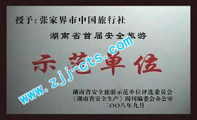 12、2008年9月被湖南省安全旅游示范單位評選委員會授予《湖南省首屆安全旅游示范單位》