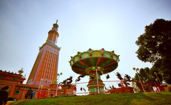 公園強化參與性、娛樂性,傾力打造中南地區(qū)最大最美麗的主題樂園。開園伊始長沙世界之窗引進了湖南省首家動感電影、最高坡度的探險漂流河、國內(nèi)首臺全彩色包裝的山頂三環(huán)過山車(見圖片三),增強了游客的參與性。2003年以來,投資數(shù)千萬元興建頂級游樂設(shè)備飛天大羅盤